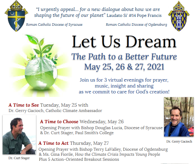 Wednesday, May 26: A Time to Choose with Dr. Curt Stager, Paul Smiths College. Opening Prayer by Bishop Douglas J. Lucia.Thursday,