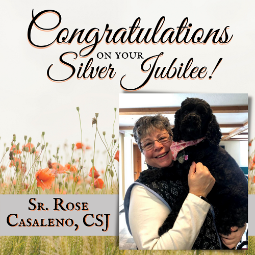 + Sr. Rose Casaleno, CSJ, Director of Campus Ministry for nearby Newman House at Binghamton University, is celebrating twenty-five years as a Sister of St. Joseph. We congratulate her on this milestone and appreciate the fine inspiration she is to other young women thinking of pursuing a vocation in consecrated life.