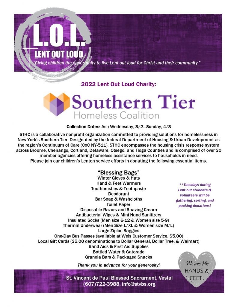 Lent Out Loud (LOL) March 21, 2022 | No Comments Reminder, Lent Out Loud is tomorrow at 6:00 pm! This is a very important cause, but not only that… but lot’s of fun for all ages! Come join us and let’s help out our community!