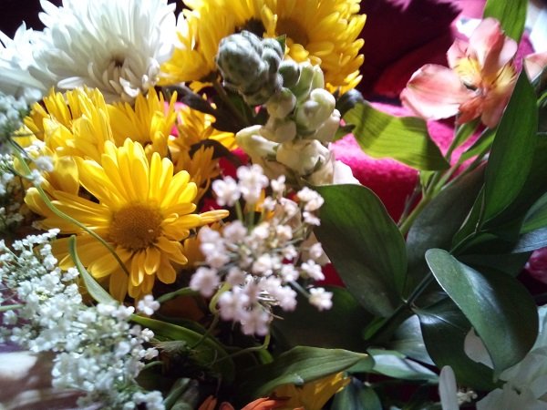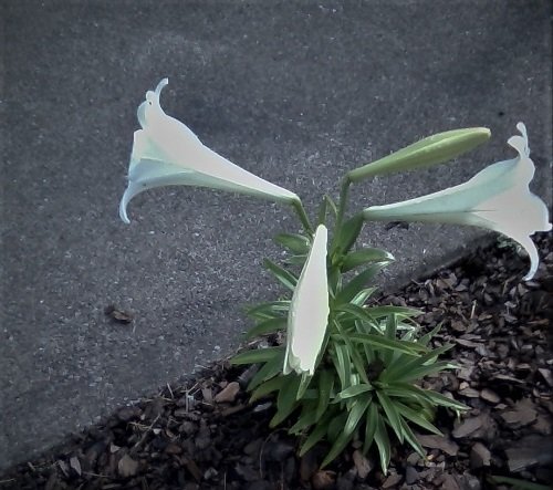 I was driving home from church a bit later than usual Monday afternoon when I saw the large sun setting in the sky. I should have pulled over to get a pic, but I waited the extra three minutes to get home. Just out of the car, I snapped something just as beautiful. Glad to take a breath and recall a hectic day. Can you see my thought balloon?