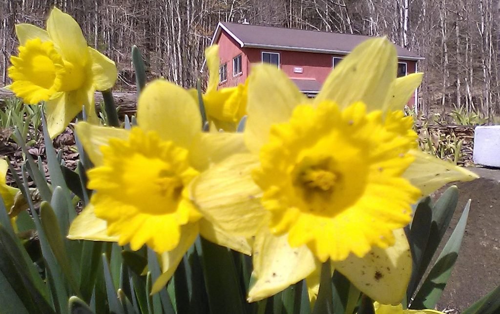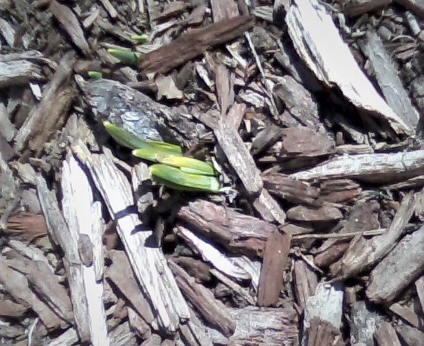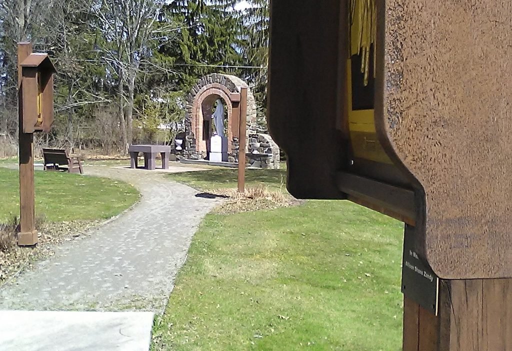 I had my first real “walk” around the church grounds this morning since the 40-inch snowfall, followed by the big rains. Lots to see. The slushy hoof prints of deer that crisscrossed near the Blessed Mother statue are melting into the grass.