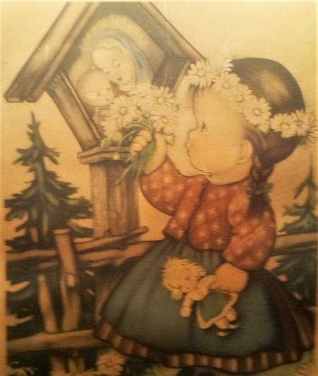 I hope to put a decades-old Nativity scene next to it. My mom was the artist who created the images. The bright paint and sparkles are chipping now off this Masonite board. For the moment, it’s in the basement. But with my brother’s help, we should be able to get it outside by Christmas Eve.