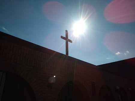 It’s been a few years now since the “old” cross went back up, illuminated at night, in front of the skylight at church. And with daytime clouds as a backdrop, the cross can certainly be a highlight in our eyesight.
