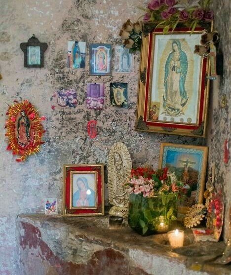 Men were told to take off their hats if they entered that hut. Chickens stood guard over bags of grain stored there. In the back, candles were lit at a small altar. That’s where I noticed the image of Our Lady of Guadalupe, patroness of the Americas.