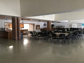 A social hall, with kitchen and storage areas, extends to the right of the vestibule. It accommodates receptions, church and community events. For a number of years, it also served to house classes for the faith formation of the children. In 1975, however, a Religious Education Center, to the left of the vestibule, with eight classrooms and offices, was added to the original structure.